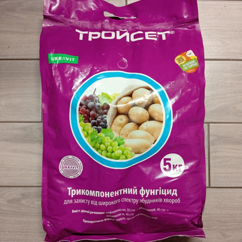 Тройсет — це трикомпонентний системний фунгіцид. Його склад продуманий так, щоб «бити» грибкові хвороби з різних боків: